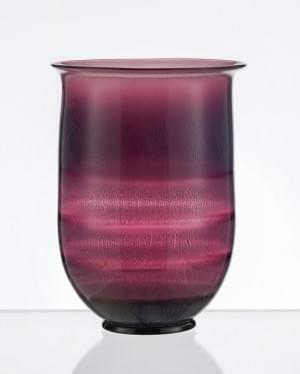 Vase cloche inversée, verre violet à motifs de bandes givrées ar...