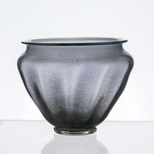 Vase coupe, verre à décor givré argenté sur fond fumé noir, sign...