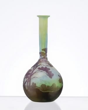 Verre multicouche dégagé à l'acide à décor de fleurs mauves sur...