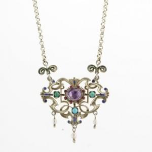 Métal émaillé serti d'une améthyste en son centre dans un entour...