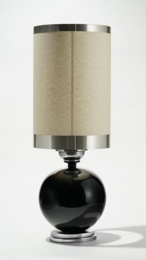 Métal laqué noir, boule en plexiglass transparent, bronze, H 162...