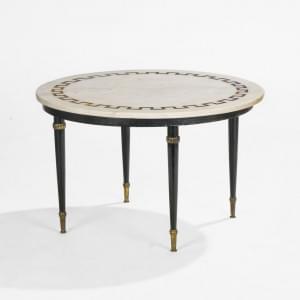 Piètement en métal laqué noir, plateau en marbre et incrustation...