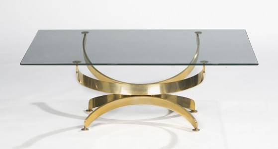 Piètement formé d'arcs affrontés, métal doré et verre, 42x120x81...