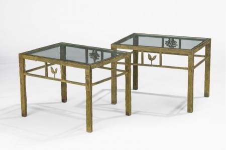 Table basse, plateau en verre dépoli, pieds en bronze doré, 41x1...