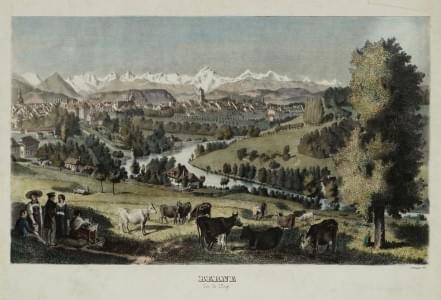 Berne vue de l'Engi, gravure en couleurs, 39x58 cm