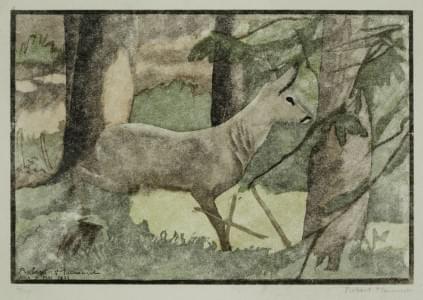 Biche, Jura 9 mai 1933, bois gravé, signé, daté et numéroté 4/34...