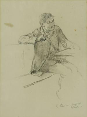 Homme assis sur un banc, hommage à Otto Vautier, fusain sur papi...