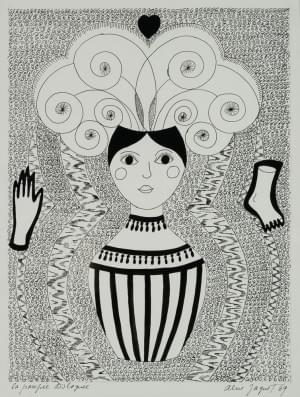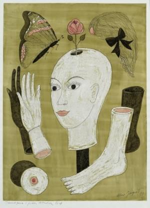 La poupée disloquée, encre, signée et datée 69, 38x29 cm