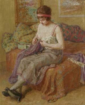 Femme endormie, gouache sur toile, 66,5x44,5 cm