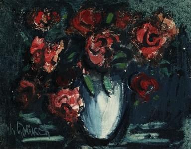 Bouquet de fleurs, huile sur pavatex, monogrammée, 42x32 cm