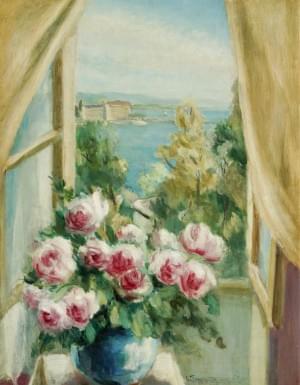 Vue de la rade de Genève depuis les Pâquis, huile sur panneau, 4...