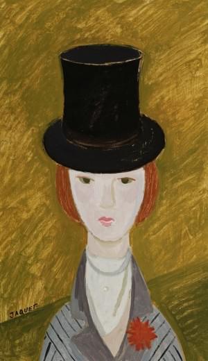Haut de forme, huile sur panneau signée, 51x29 cm