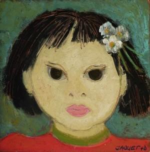 Dominique, huile sur pavatex, signée, 60x51 cm
