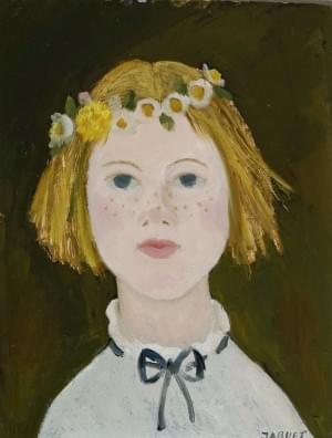 Fillette à la couronne de fleurs, huile sur panneau signée, 34x2...