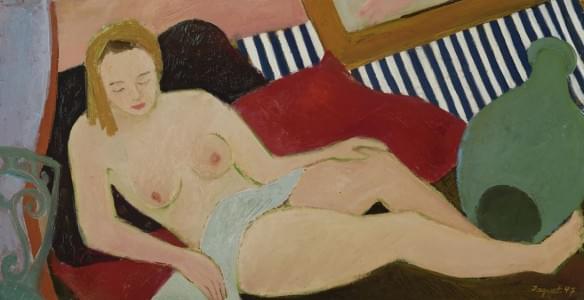 Nu allongé, huile sur panneau signée et datée 47, 35x66 cm