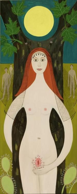 La femme drosera, huile sur pavatex, signée et datée 82, 122x45...