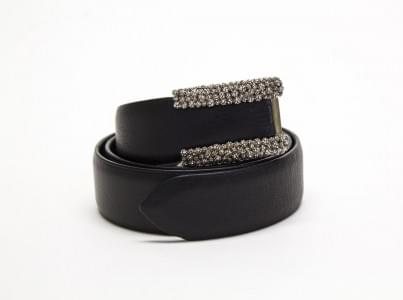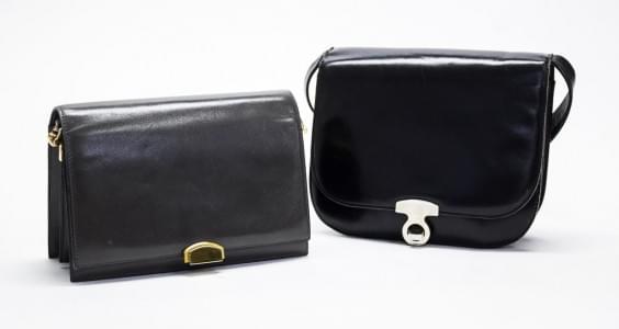 Cuir lisse noir et anthracite, garniture en métal et métal doré,...