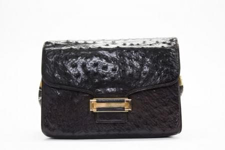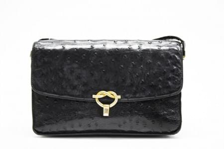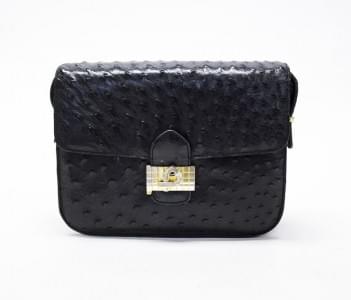 Cuir d'autruche noir, garniture en métal doré, bandoulière ajust...