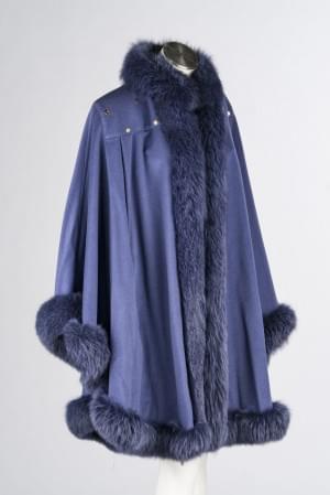 Bordure en fourrure teintée violette, poches latérales, piqures...