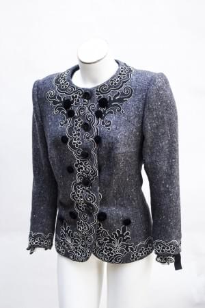 Laine grise et motifs floraux en tissu noir à liseré blanc, doub...