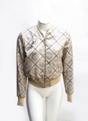 Polyester crème, intérieur beige, fermeture Eclair, taille 38