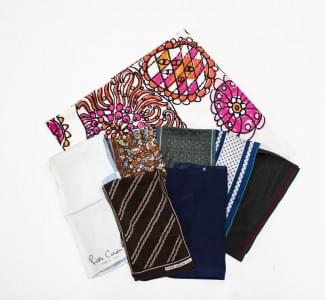 3034. Emanuel Ungaro, Pierre Cardin, lot de cinq écharpes et trois fou...