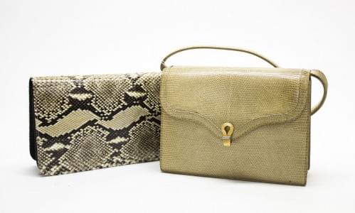Cuir de lézard vert, garniture en métal doré, bandoulière à mail...