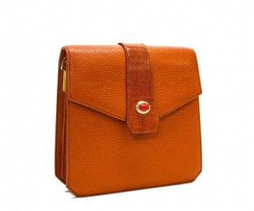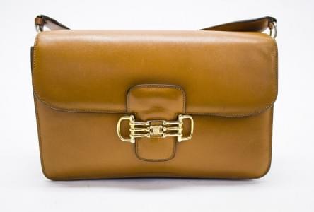 Cuir lisse couleur havane, garniture en métal doré, fermoir à dé...