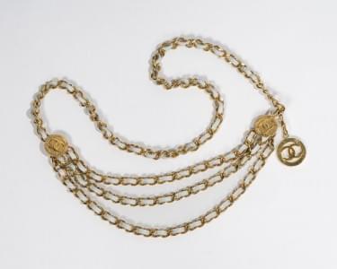 3054. Chanel, ceinture chaîne entrelacée de cuir, partie avant formée...