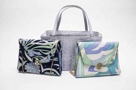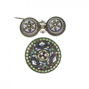 Soie, un à décor de pièce de joaillerie sur fond bleu et vert, 8...