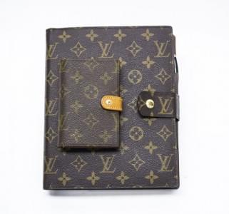 Toile monogrammée, fermetures à pression, 11x9cm et 18x23cm