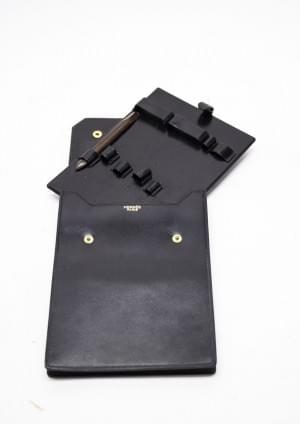 Cuir noir lisse, fermeture à double pression, 20x14 cm