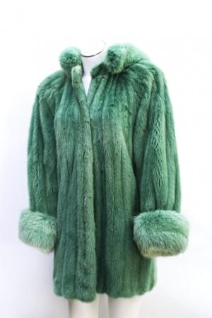 3030. Catherine de Poorter, pelisse verte satinée bordée de vison