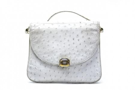 Cuir d'autruche blanc, garniture en métal doré, bandoulière, 18x...