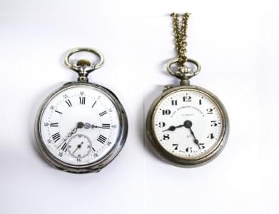 Cadran blanc, aiguilles dorées, chiffres romains bleus, circa 19...
