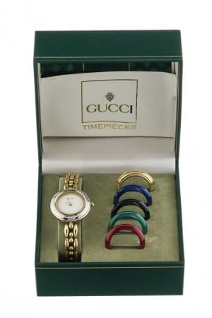 3075. Gucci, Timepieces, montre-bracelet à quartz ronde avec six lunet...