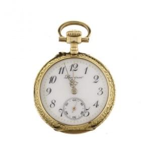 Cadran doré, chiffres romains et aiguilles noirs, boitier en or...