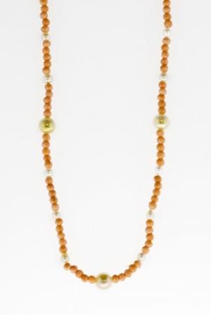 Cuir couleur perle verni, double poignée ornée de perles de méta...
