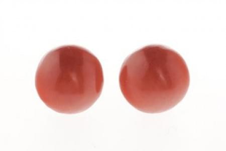 3099. Paire de puces d'oreilles serties de perles de corail aplaties