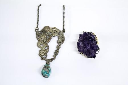 3104. Pendentif Art Nouveau à motif de jeune fille retenant une turquo...