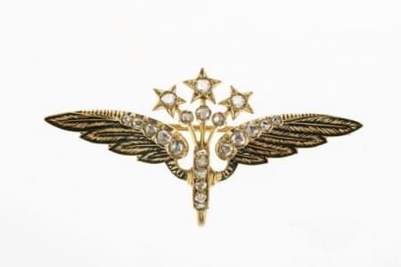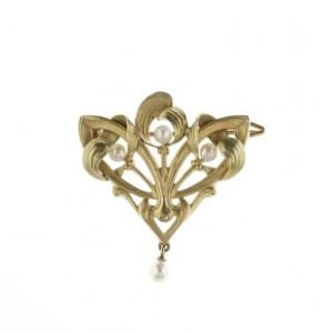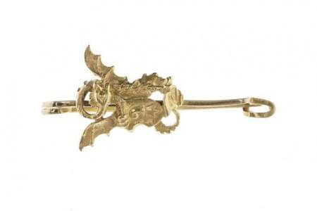 3125. Lot d'une broche à motif de fleur de lys et d'une broche barrett...
