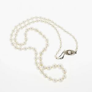3169. Lot de deux colliers de perles dont un en chute, et d'un bracele...