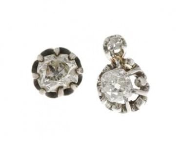 3124. Lot de deux puces d'oreilles anciennes dépareillées serties de d...