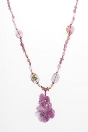 3141. Collier de perles de cristal de roche, rubis et jade retenant un...