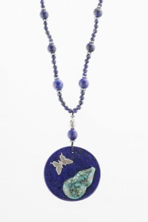 3140. Collier de perles de lapis lazuli retenant un pendentif en lapis...