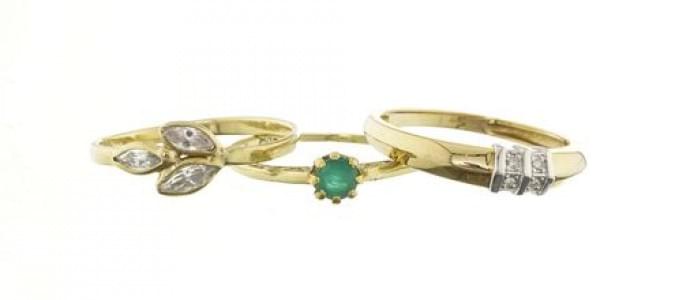 Or 750, 585 et argent, doigt 52-12, 51-11 et 50-10, poids brut 8...