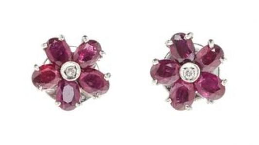 3163. Paire de puces d'oreilles à motifs de fleurs serties de rubis et...