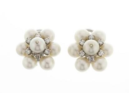 3165. Paire de clips d'oreilles sertis de perles et de diamants