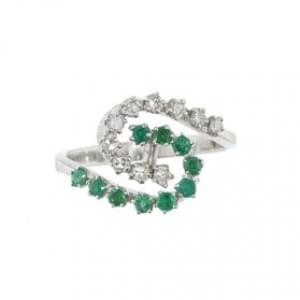3167. Bague à motif d'entrelacs sertis de diamants et émeraudes