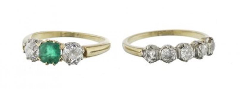 3183. Lot de deux bagues, l'une sertie d'une émeraude épaulée de deux...